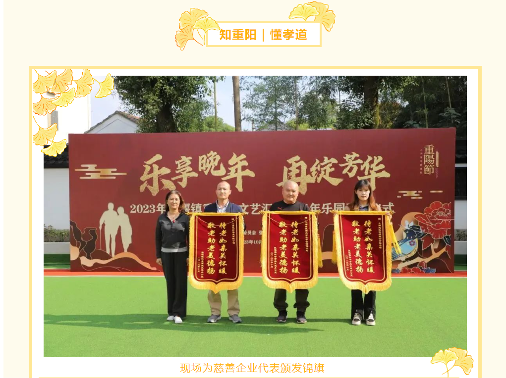 金秋十月,丹桂飘香,恰逢一年一度的重阳佳节,为大力弘扬中华民族尊老敬老的传统美德,进一步营造良好的爱老助老社会氛围,10月20日下午,张堰镇隆重举行“乐享晚年 再绽芳华”2023年张堰镇重阳节文艺汇演暨老年乐园开园仪式,起帆电缆作为慈善企业代表出席本次活动。